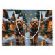 This festive design captures the joyful spirit of the holiday season, featuring an adorable dogs.Nestled in a winter wonderland, complete with a decorated Christmas tree, and beautifully wrapped presents. Snowflakes gently fall, adding a magical touch to the scene, while the vibrant colors of the holiday decorations create a warm and cheerful atmosphere.