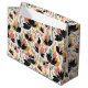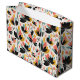 Un Grand Sac Cadeau Conçu Dans Des Couleurs Rétro De Noir, Sarcelle, Or Et Orange Façonné Dans Un Motif De Feuille Florale