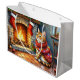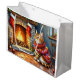 Grand Sac Cadeau Cozy Abyssinian Cat by Fireplace Christmas Lights