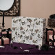 Dessiné à la main dans l'encre noire, ce sac cadeau présente un beau motif de crânes, de roses et de toiles d'araignée dans des tons crème et rougis, le tout contre un élégant arrière - plan gris clair.
