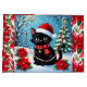 Grand Sac Cadeau Cute Black Cat and Poinsettia Christmas