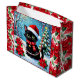 A sweet Christmas gift bag with a black cat, Christmas tree and Poinsettia flower background.