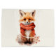 Gift bag with an illustration of a reddish orange fox pup. A subtle smile on his face. Wearing a nice red scarf for warmth.