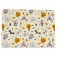 Ce mignon motif d'Halloween présente un délicieux mélange d'illustrations éffrayantes et sucrées disséminées dans un arrière - plan beige clair. Le design comprend des éléments d'Halloween ludiques tels que le casquette d'une sorcière violette orné d'étoiles, des bonbons en forme de citrouille, des crânes et des os lunaires, et des sucettes. Les autres touches éffrayantes comprennent les araignées accrochées à des toiles, des chauves-souris, des pierres tombales et des bouteilles de potion étiquetées "Magie". De petites étoiles et des pois remplissent les vides, donnant à la conception une ambiance joyeuse et amusante. La palette de couleurs douces, violets, oranges et jaunes, ajoute au charme de ce motif, parfait pour une fête d'Halloween légère.