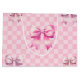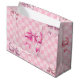 Grand Sac Cadeau Cute Pink Ribbon and Gingham Sweet Girly Pattern
