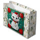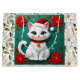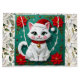 Grand Sac Cadeau Cute White Cat and Poinsettia Christmas