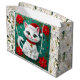 A sweet Christmas gift bag with a white cat and Poinsettia flower background.