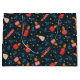 This lively holiday pattern features a mix of hand-drawn seasonal elements including candles, ornaments, winter foliage, sweets, and festive sprinkles—all set against a rich dark background. The night-sky palette creates beautiful contrast, making the warm reds, creams, greens, and golden details glow. Inspired by classic holiday décor and cozy winter nights, this design feels energetic, warm, and full of seasonal cheer.