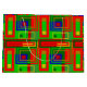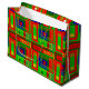 Grand sac cadeau de Noël brillant coloré avec rouge, vert, or et bleu.