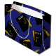 Sac-cadeau de fin d'études créatif pour votre classe préférée de 2026 diplômé avec des casquettes noires et dorées sur fond bleu. Pour personnaliser, modifiez le texte pour ajouter le nom du diplômé et son année de terminale.