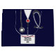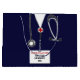Sacoche cadeau unique pour diplômé d'une école de médecine pour le grade de médecin avec gommage bleu marine et stéthoscope. Modifier le texte pour ajouter le nom du médecin, de l'adjoint médical ou de l'infirmier et les titres de compétence en médecine.