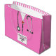 Sac-cadeau pour diplômé d'une école de médecine créative pour médecin diplômé avec gommages d'hôpital rose et stéthoscope. Modifier le texte pour ajouter le nom du médecin, de l'adjoint médical ou de l'infirmier et les titres de compétence en médecine.