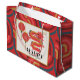 Ce sac-cadeau moderne pour le Nouvel An chinois présente un dragon chinois rouge et des lanternes chinoises rouges sur fond rouge avec des motifs géométriques. Personnalisez-le selon vos besoins. Idéal pour les entreprises, les restaurants et les magasins ! Vous pouvez trouver des produits assortis dans ma boutique.