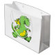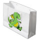 Grand Sac Cadeau Dragon vert caricature marchant sur ses pieds