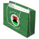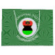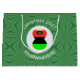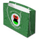 Un grand sac cadeau comporte un ange portant le drapeau de la diaspora africaine pour la décoration de cadeaux de vacances ou la décoration de Noël. L'ange du drapeau afro-américain de Noël se trouve à l'intérieur d'une fractale circulaire blanche de carrés ondulés. L'arrière-plan est une fractale verte de carrés ondulés. Ajoutez votre propre texte ou personnalisez avec un nom et l'année. Peut également faire un beau papier cadeau pour Kwanzaa.