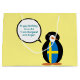 Mme Penguin aimait ses vacances en Suède. Elle s'est procuré un gilet du drapeau suédois bleu et jaune. Ici, elle dit ce que vous voulez quand vous customisez les mots dans sa bulle de discussion sur les articles de fête. Vous pouvez changer la couleur arrière - plan pour correspondre à votre goût personnel ou à votre thème de fête. Le drapeau de la Suède est orné d'un arrière - plan bleu avec une croix nordique ou scandinave jaune.