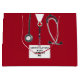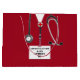 Sac cadeau de fin d'études en médecine, anniversaire ou félicitations pour un médecin avec tenue d'hôpital et stéthoscope. Modifier le texte pour ajouter le nom du médecin, du médecin assistant ou de l'infirmière et les références médicales.