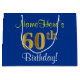 Grand Sac Cadeau Elégant, Bleu, Faux Or 60ème Anniversaire + Nom