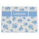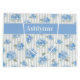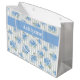 Grand Sac Cadeau Elegant Blue Hydrangea Pattern Gray Stripe Name