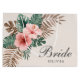 Elégant design de sac cadeau pour la mariée, avec des fleurs d'aquarelle rose poussiéreuse et des feuilles tropicaux sur un arrière - plan crème.