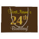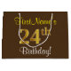 Grand Sac Cadeau Elégant, Brown, Faux Gold 24ème anniversaire + Nom