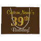 Grand Sac Cadeau Elégant, Brown, Faux Gold 39ème anniversaire + Nom