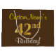 Grand Sac Cadeau Elégant, Brown, Faux Gold 42ème anniversaire + Nom
