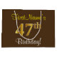 Grand Sac Cadeau Elégant, Brown, Faux Gold 47ème anniversaire + Nom
