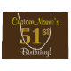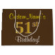 Grand Sac Cadeau Elégant, Brown, Faux Gold 51ème Anniversaire + Nom