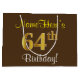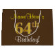 Grand Sac Cadeau Elégant, Brown, Faux Gold 64ème anniversaire + Nom