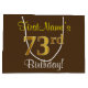 Grand Sac Cadeau Elégant, Brown, Faux Gold 73ème anniversaire + Nom