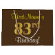 Grand Sac Cadeau Elégant, Brown, Faux Gold 83ème anniversaire + Nom
