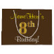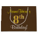 Grand Sac Cadeau Elégant, Brown, Faux Gold 8ème anniversaire + Nom