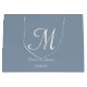 Grand Sac Cadeau Elégant Dusty Blue & White Monogramme Nom