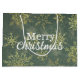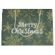 Grand Sac Cadeau Élégant Gold Sage Green Snowflakes Joyeux Noël