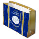 Grand Sac Cadeau Élégant Graduation Monogramme Bleu Marbre Or Huile