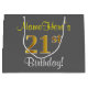 Grand Sac Cadeau Elégant, gris, Faux Gold 21e anniversaire + Nom