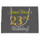 Grand Sac Cadeau Elégant, gris, Faux Gold 23ème anniversaire + Nom