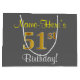 Grand Sac Cadeau Elégant, gris, Faux Gold 51ème anniversaire + Nom
