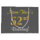 Grand Sac Cadeau Elégant, gris, Faux Gold 52e anniversaire + Nom