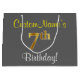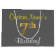 Grand Sac Cadeau Elégant, gris, Faux Gold 7e anniversaire; Nom pers