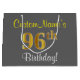 Grand Sac Cadeau Elégant, gris, Faux Gold 96ème anniversaire + Nom