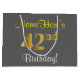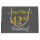 Grand Sac Cadeau Elégant, gris, Faux Or 42ème anniversaire + Nom