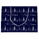 Grand Sac Cadeau Élégant Marine Blue Winter Pine Trees Noël