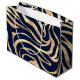Grand Sac Cadeau Elegant Navy Blue Gold Zebra Print