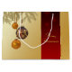 Illustration de Noël noble et élégante : branches dorées d'arbres de Noël avec pendaison de boules de Noël sur un arrière - plan rouge-doré.