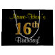 Grand Sac Cadeau Elégant, Noir, Faux Or 16ème Anniversaire + Nom