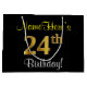 Grand Sac Cadeau Elégant, Noir, Faux Or 24ème Anniversaire + Nom