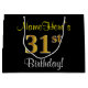 Grand Sac Cadeau Elégant, Noir, Faux Or 31ème Anniversaire + Nom