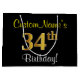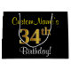 Grand Sac Cadeau Elégant, Noir, Faux Or 34ème Anniversaire + Nom